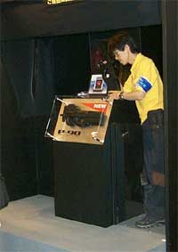 ![]() ご自由にお試し下さい。と書いてありますが、弾は入っていません。 電動の衝撃を感じる事はできます。 しかしまぁこの装備は重いです。 ハッキリ言って「サバゲーじゃ使えねぇ〜」って感じです。 シュワちゃんなら大丈夫かな? P-90の試射をしましたが、なかなかの出来栄えです。 ちょっと衝撃が少ないかなって感じでしたが、とても撃ちやすかったです。 |