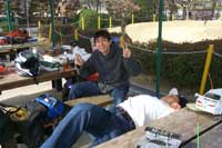 | ↑バイクで静岡までやってきたM山君。疲れて寝ております。 |