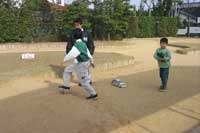 | ↑ミニ四駆じゃないんだから・・・車について歩かなくても・・・(こうちゃんとゆうき君です。) |