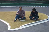 ↑タイム計測前に、みなさんセッティングに忙しそう・・・バッテリー充電が間に合わない状態! ←M山君とゲンゲンの戦い!ん〜っ今大会の優勝者「ゲンゲン」にはかないませんでした。 |